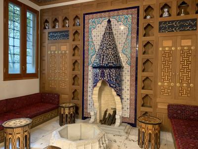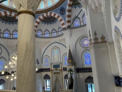礼拝堂内の2階に女性専用の礼拝場所があり、そちらから観る堂内は1階とは異なる美しさです。