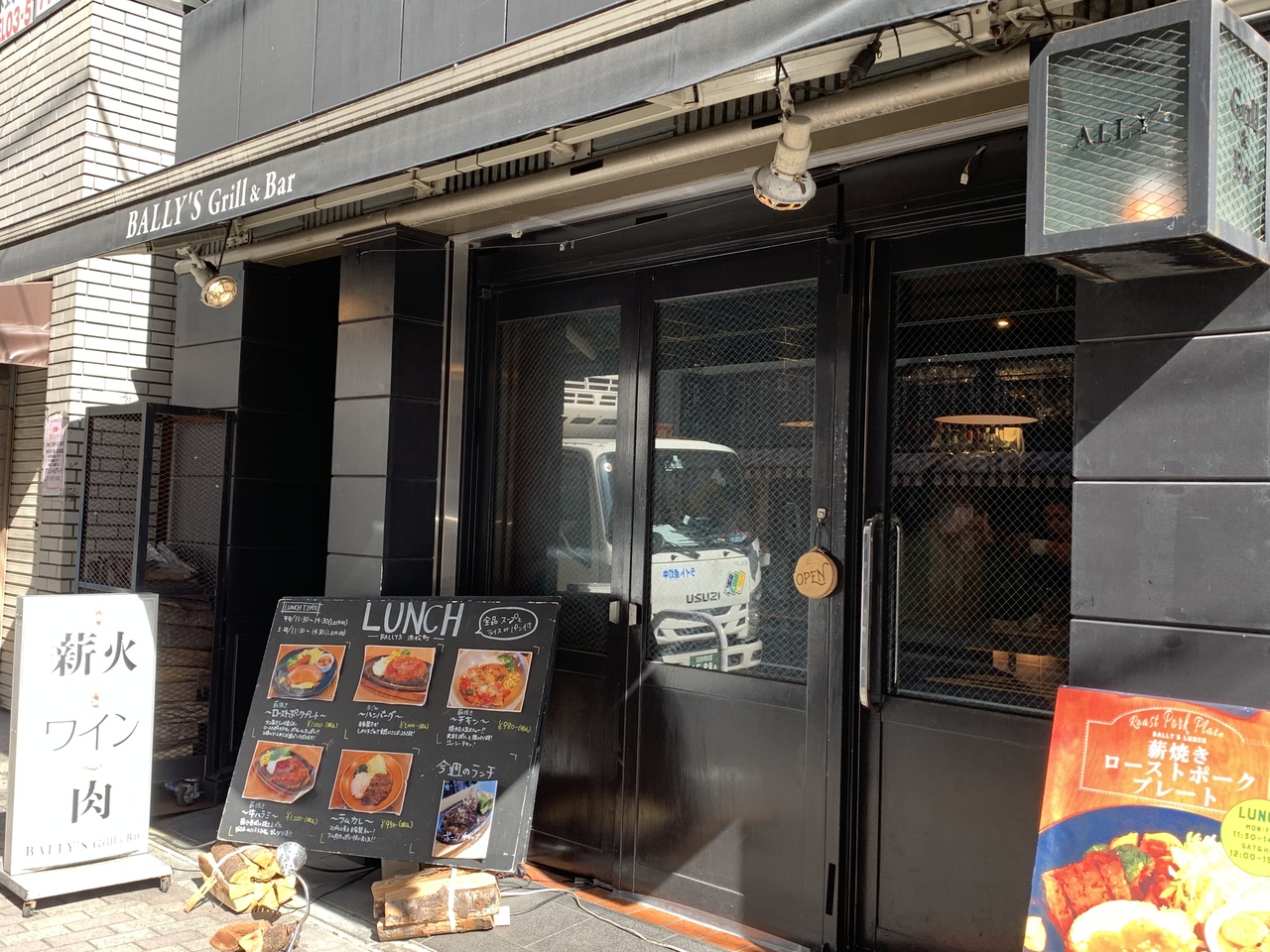 浜松町駅に近い居酒屋ビルの1階にあります。ランチで利用しました。美味しい手捏ねハンバーグが食べられます。ポークチャップはボリュームがあってコスパ良いです。薪で焼いたお肉がウリのお店、夜のバルのお店です。
