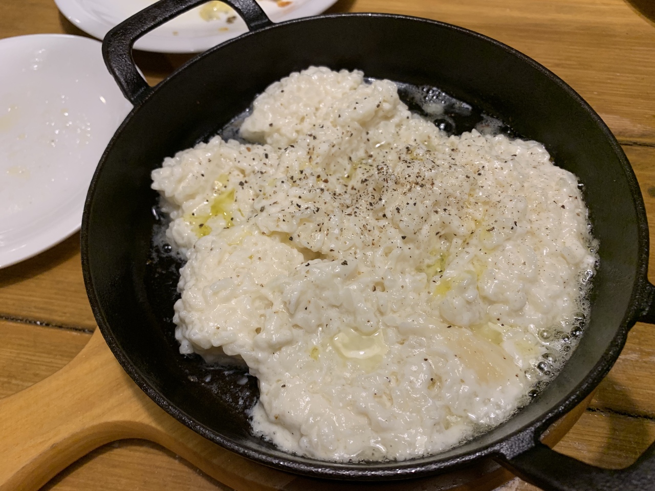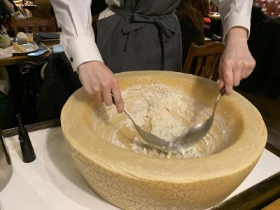 お店の演出も良く、チーズリゾットはテーブルまでやってきてくれて、目の前で最後の仕上げをしてくれます。特大チーズの真ん中で調理されるリゾットは絶品でした。