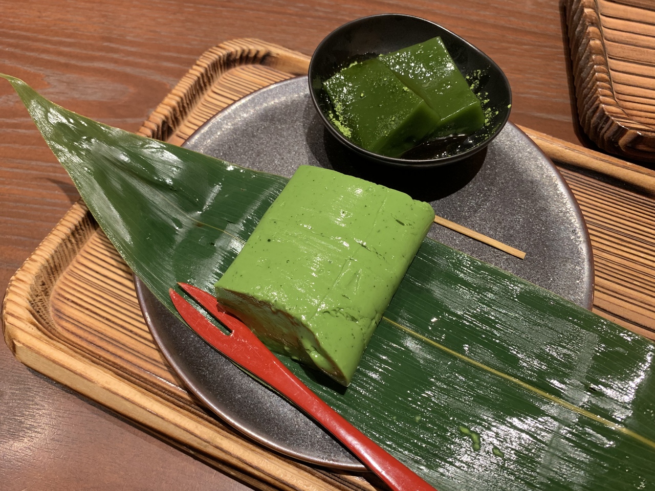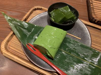 友人が抹茶の葛ねりと日本茶のセットを頼みました、こちらも絶品です。