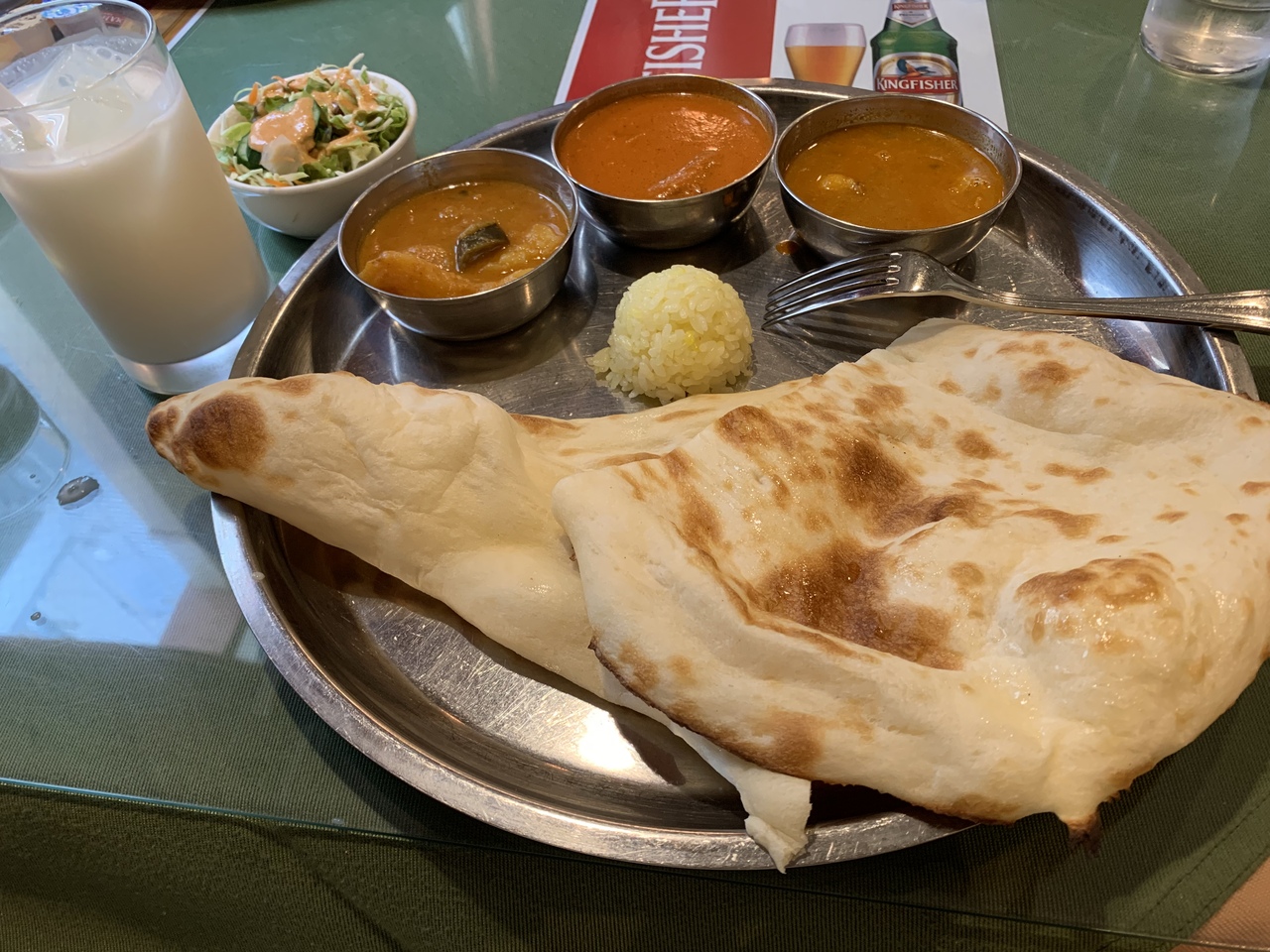 カレー3種、サラダ、ドリンク付きで890円。ドリンクはラッシーも選べます。- 旅行時期