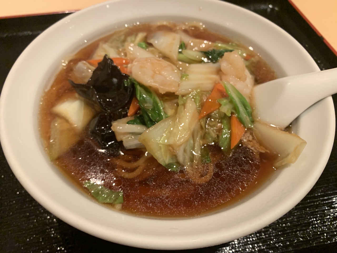 地下1Fなので少し入りにくい感じです。ランチメニューがたくさんあるのでどれにするか迷います。がっつり定食を食べたい方におススメ、定食にピルクルが付いてくるのが面白い!ノーマルにラーメンを頼みました。ザ・中華屋さんのラーメンという味を久しぶりに食べました。