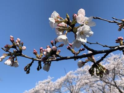 こちらもコロナウイルス感染拡大防止のため桜まつりは中止になっていて、見に来ている人はボチボチいる感じでした。