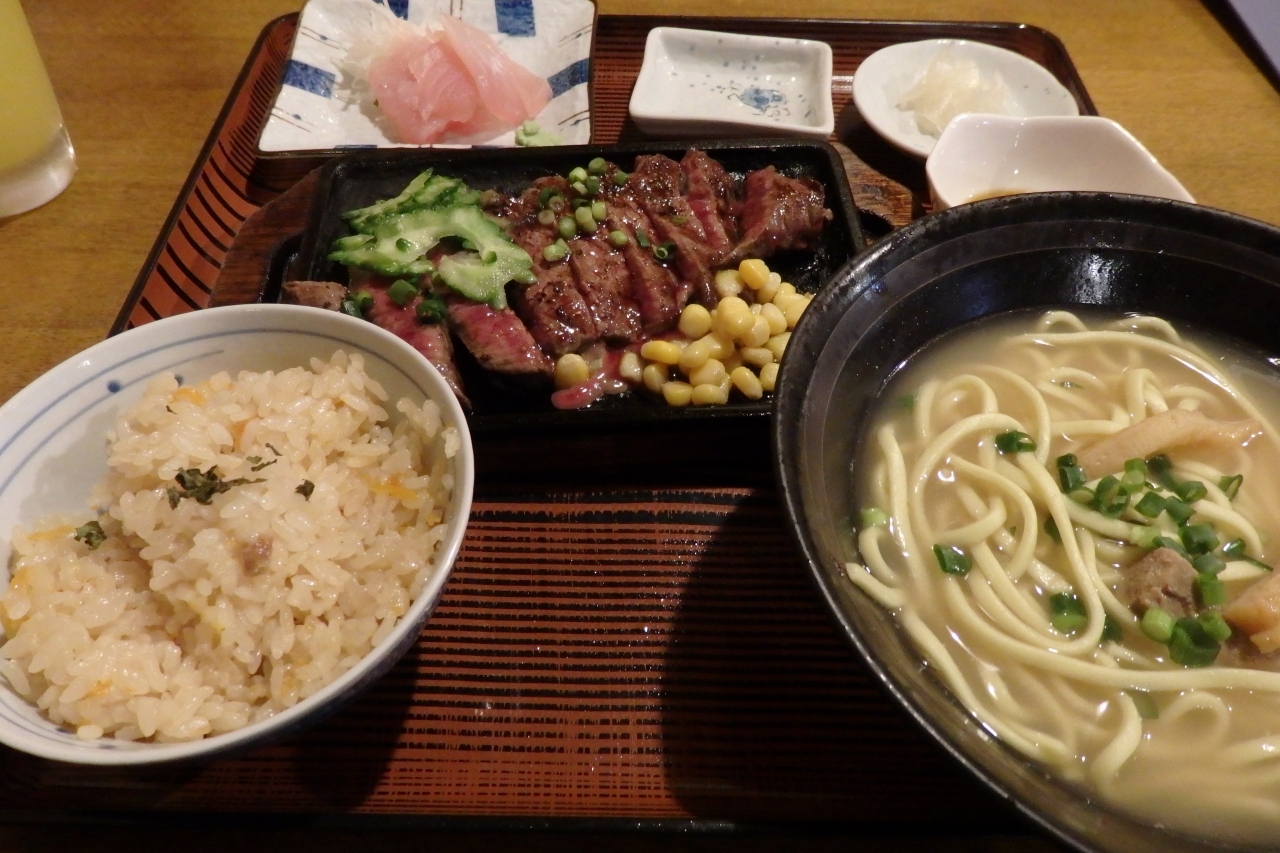 石垣牛ステーキと八重山そばのセットを食べました。