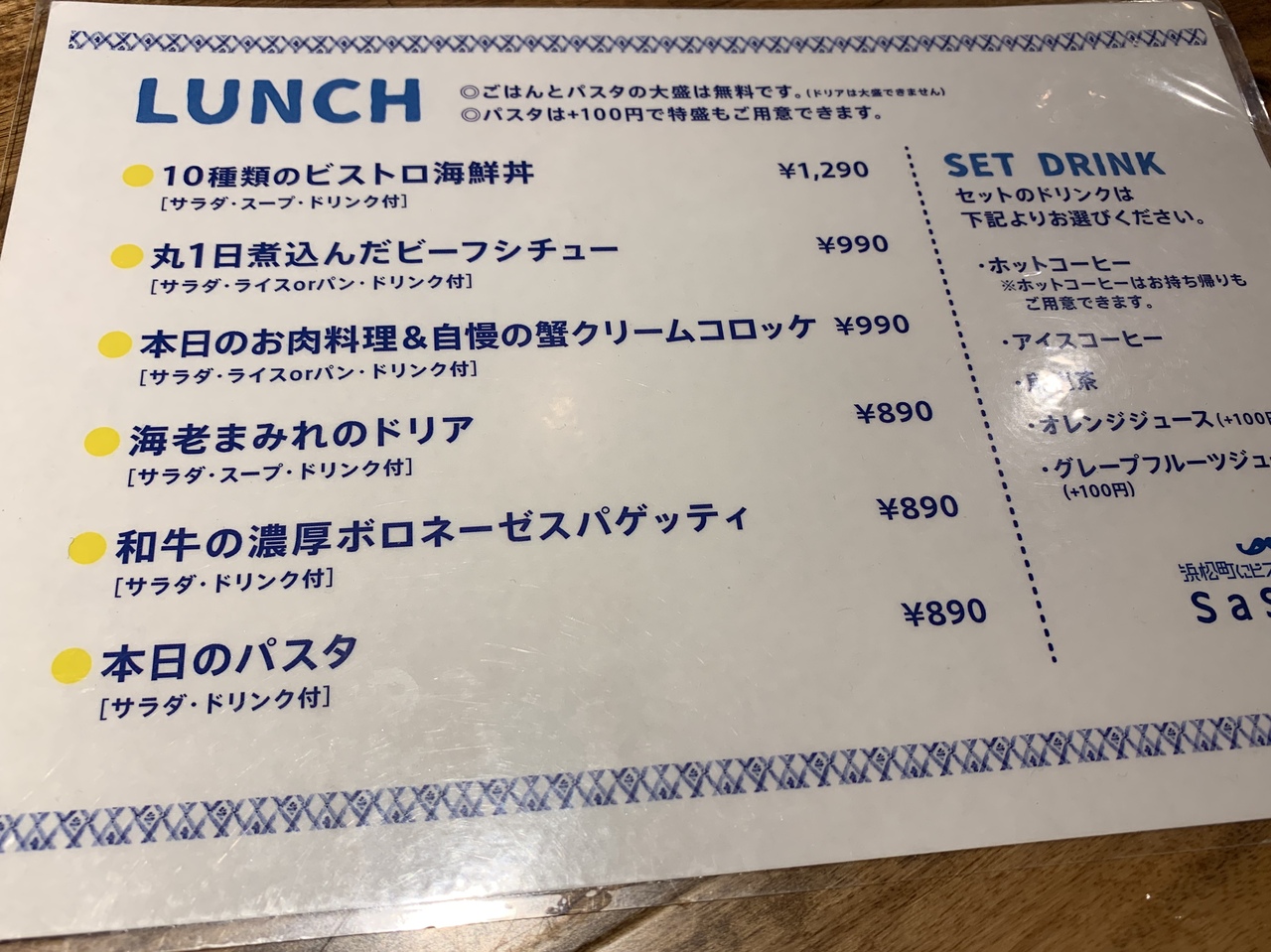 13時ころに行ったところランチで一番高い海鮮丼¥1290と、お値ごろ感のあるエビドリアは売り切れていました。