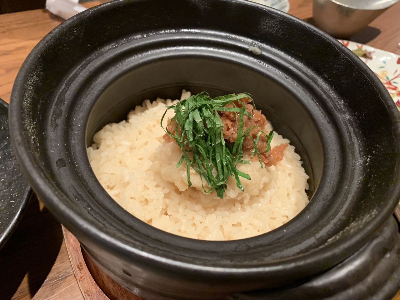 土鍋炊きごはんが売りのお店なので、鱧と梅肉の土鍋炊きごはんを頂きました。