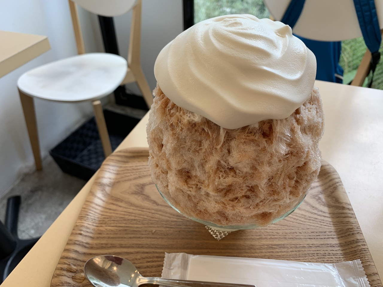 一番人気のロイヤルミルクティーのかき氷を生クリームのエスプーマトッピングで注文しました。ふわふわのかき氷で、紅茶の濃い味が付いていてとても美味しいです。