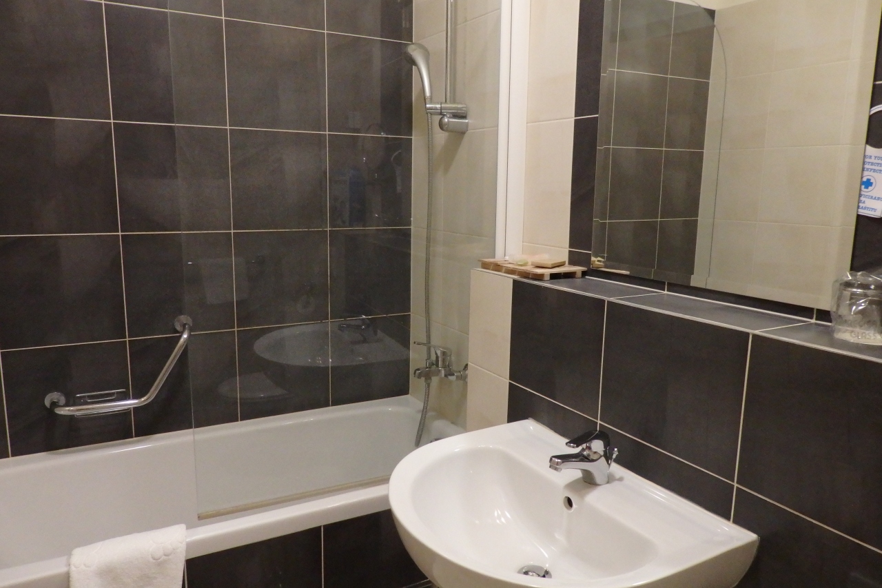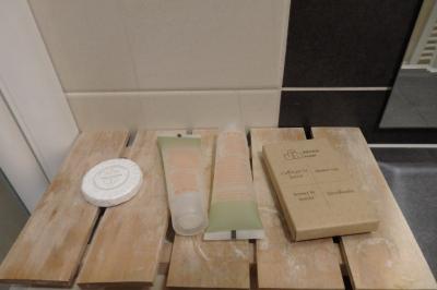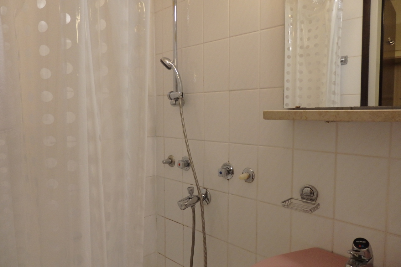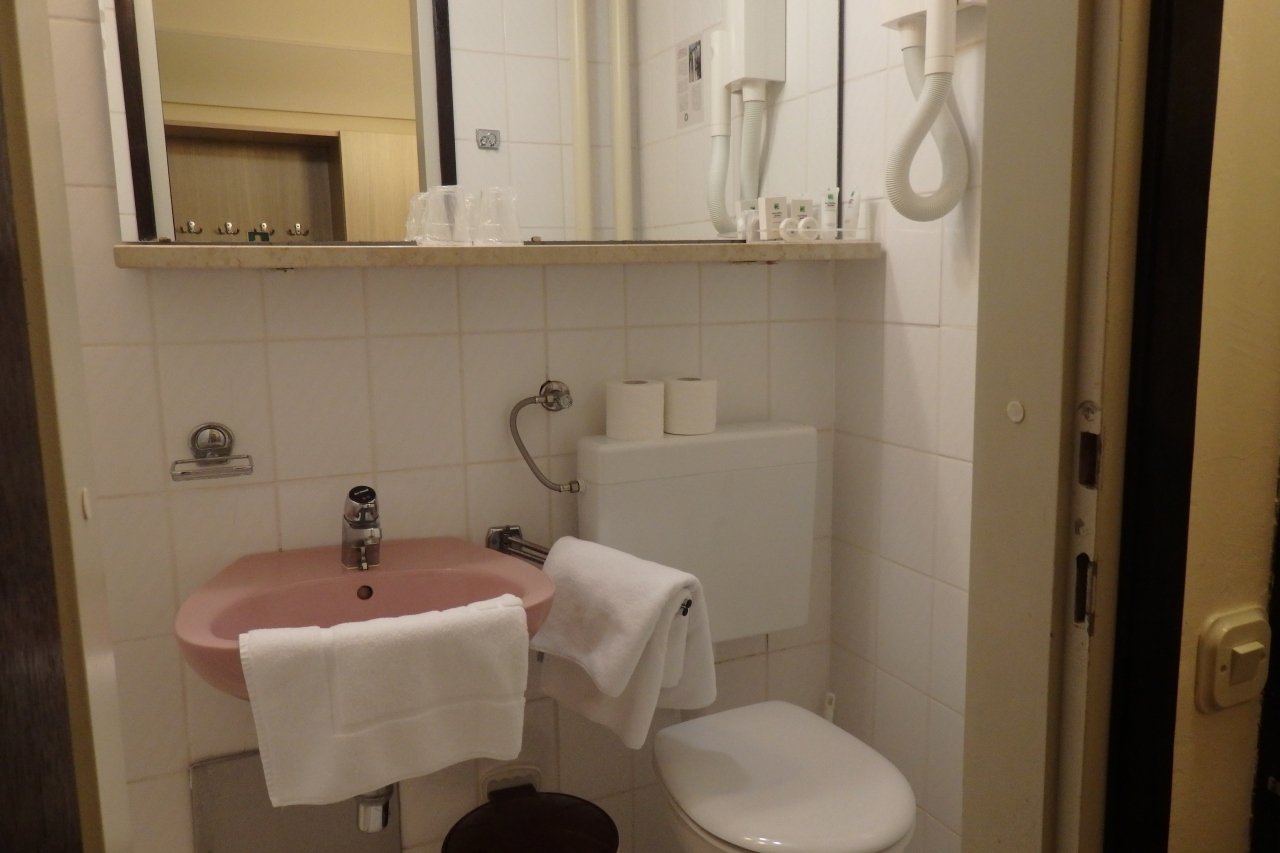 バスタブはありません、シャワーのみです。隣室でシャワーを使っている音など聞こえてきます。事前案内ではヘアドライヤーは設備無しということでしたが、置いてありました。湯沸かしポットは無し。