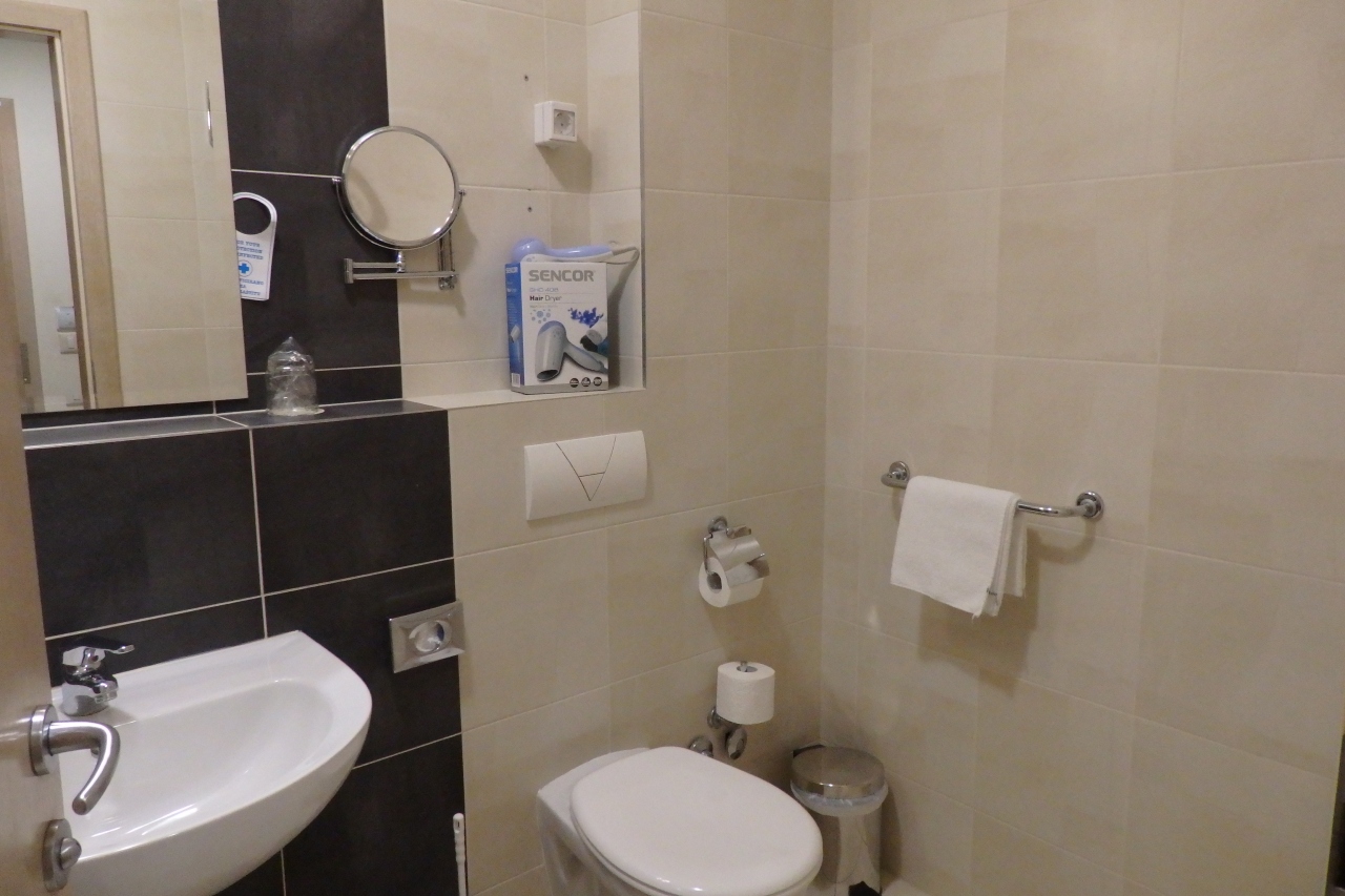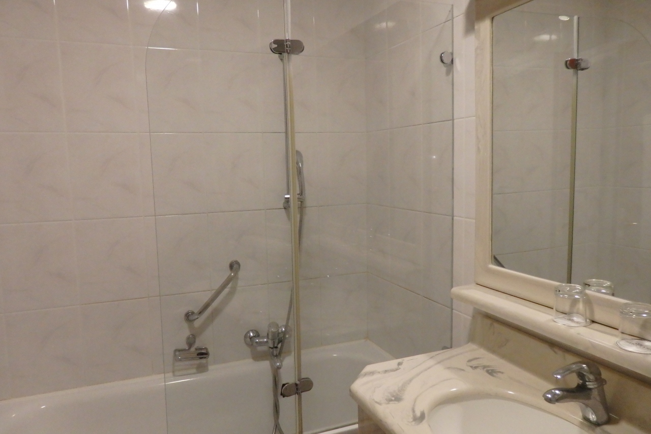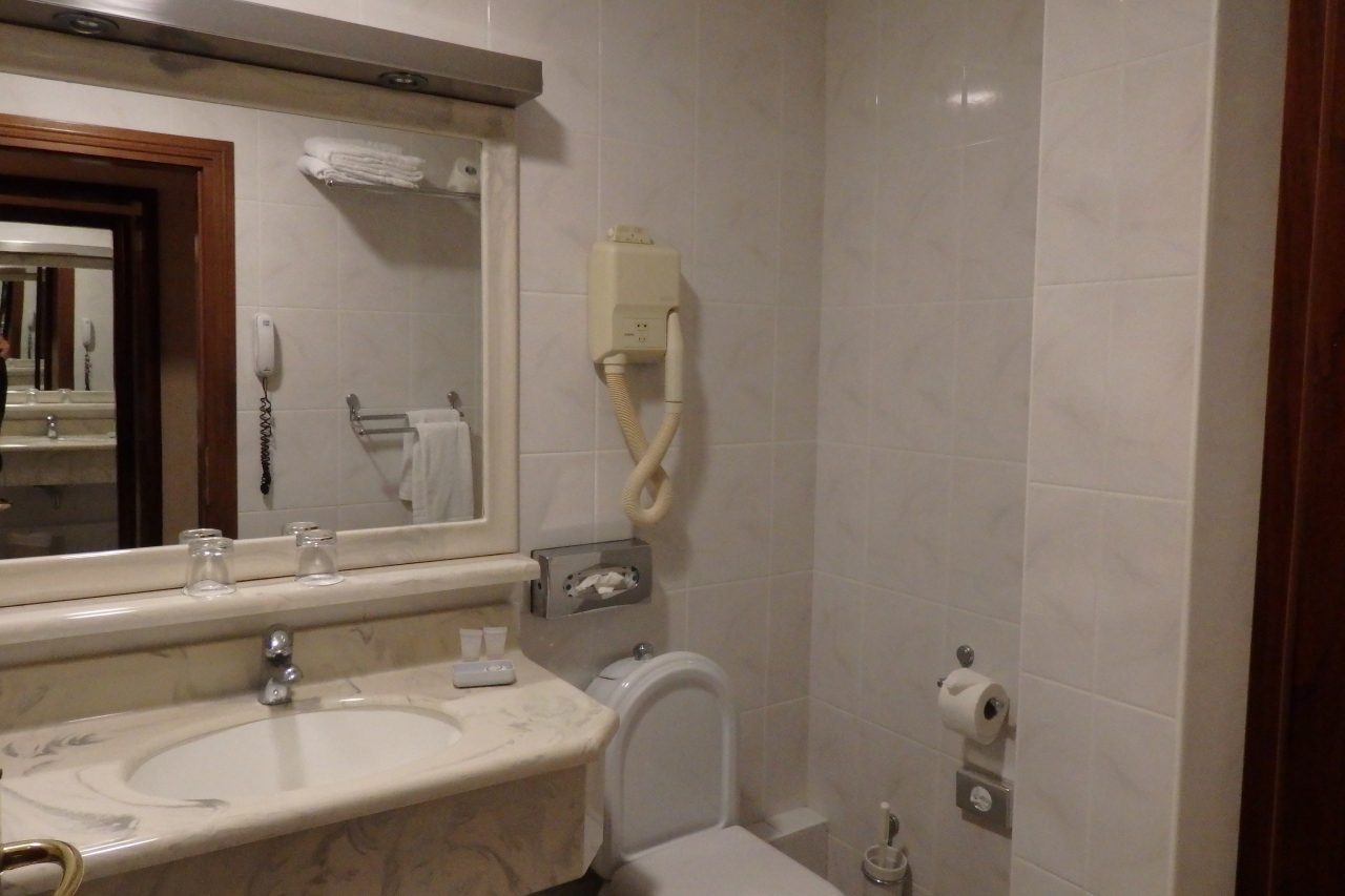 バスタブはありません、シャワーのみです。隣室でシャワーを使っている音など聞こえてきます。事前案内ではヘアドライヤーは設備無しということでしたが、置いてありました。湯沸かしポットは無し。