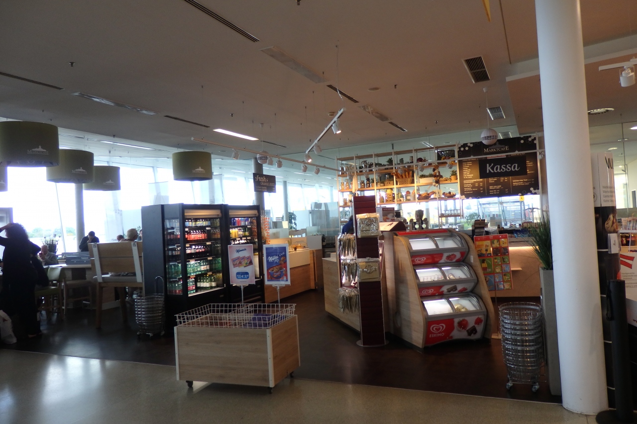 手荷物検査前にカフェと大きめなスーパーがあり、スーパーの品ぞろえも良く