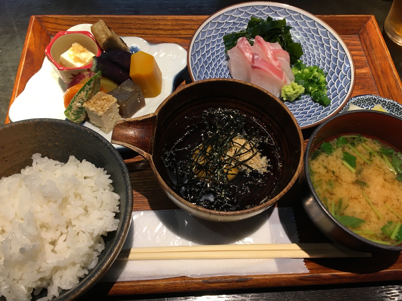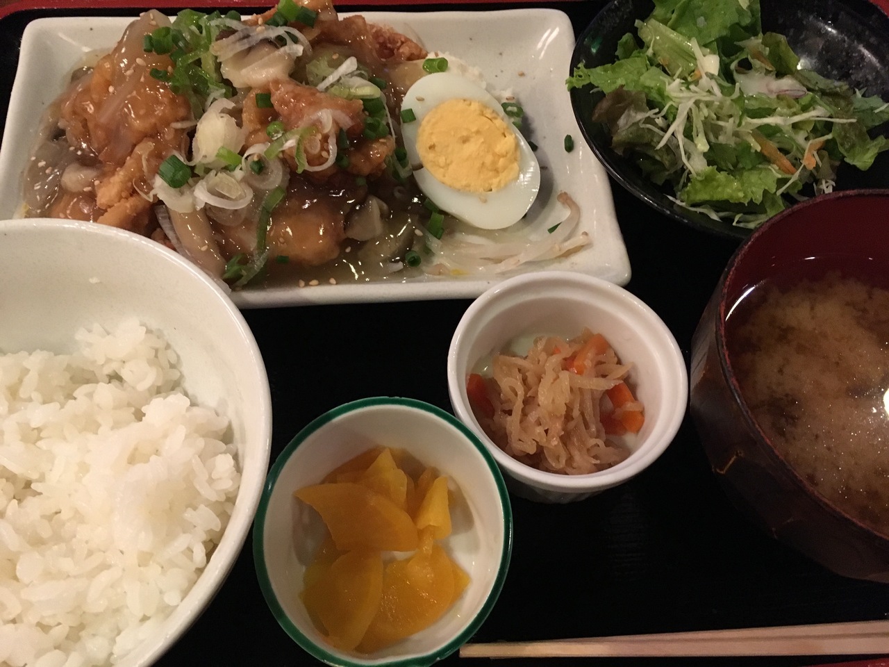 この日は鶏の唐揚げにきのこのあんかけソースがかかった定食を頼みました。