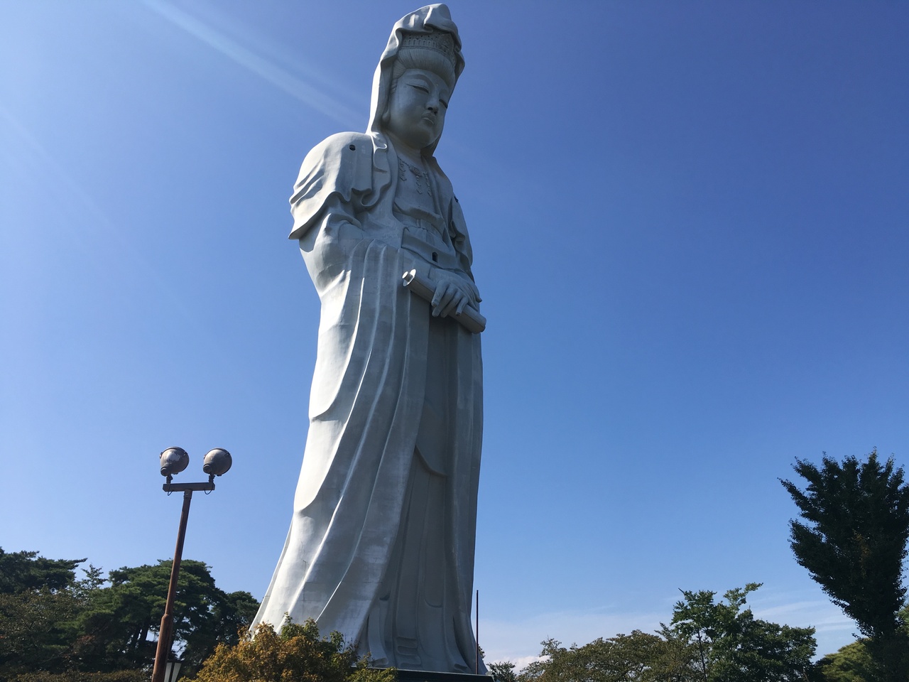 休日でお天気も良かったせいか、高崎観音や公園に行く人が多く、バスは行きも帰りも超満員のぎゅうぎゅう詰めでした。初めて行く方は参道の雰囲気も味わえるので観音山頂バス停で降りて10分くらいゆるい坂道を歩いて観音様に行くのがおススメということです。白衣観音前バス停の方が近いです。