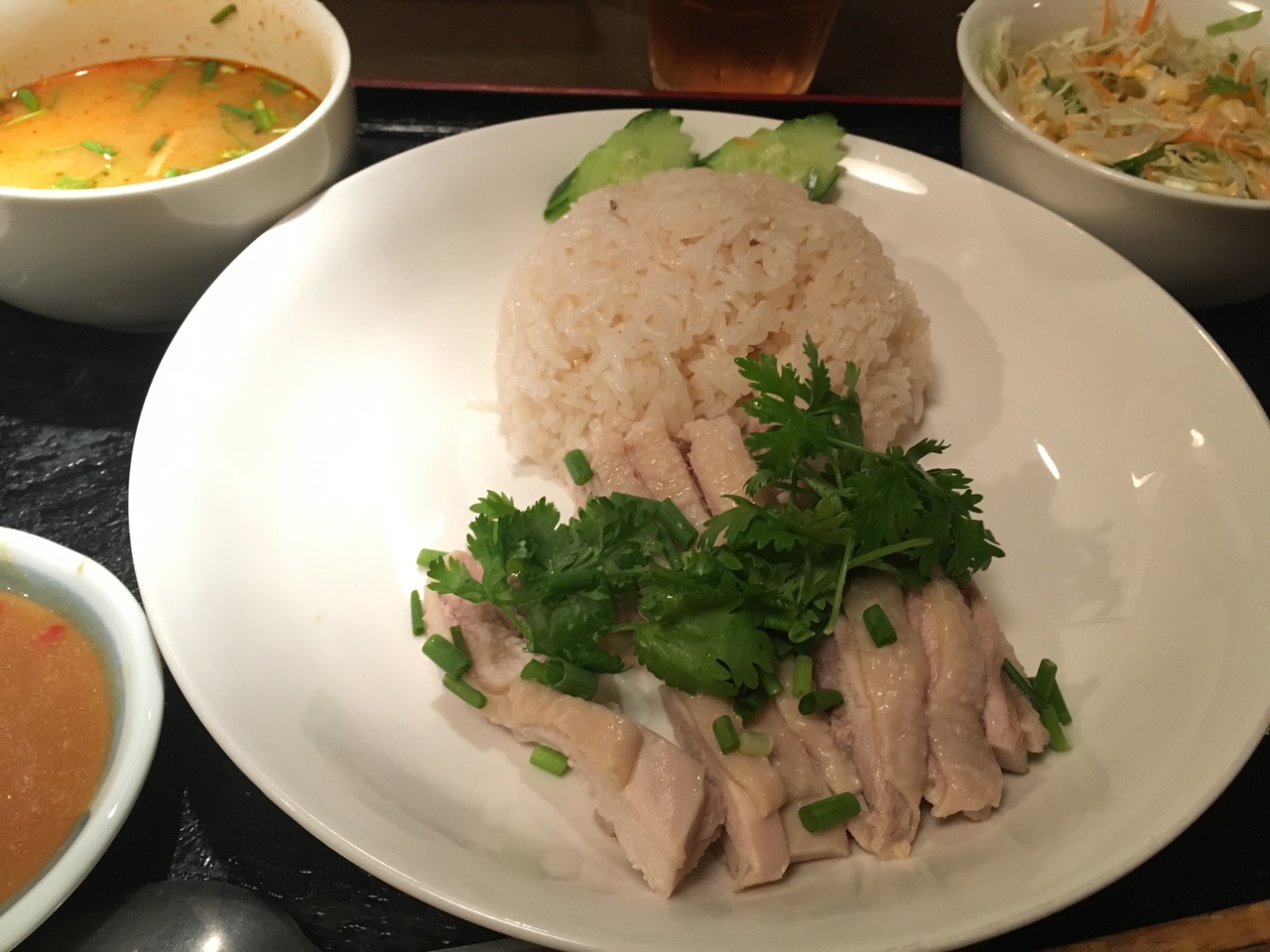 メニューはカオマンガイ、ガパオライス、グリーンカレー、週替わりメニューでパッタイがありました。12時半過ぎに行ったのですが、この日はすでにグリーンカレーは売り切れていました。全メニュー¥900