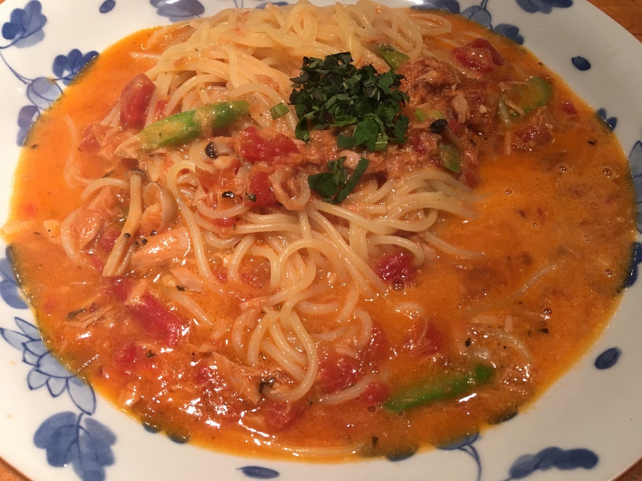 麺は細麺で、濃いめのトマトスープのような汁と良くからみます。