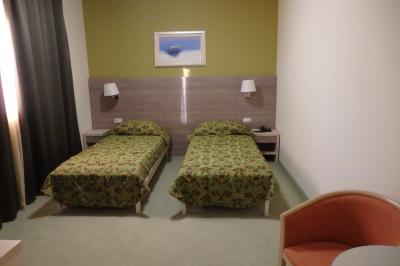 駐車場に着いた時にホテルはどこなんだろう?と思うような殺風景で工場の裏みたいな場所でびっくりしましたが、そこがホテルの前でした。ビジネスホテルという感じです。