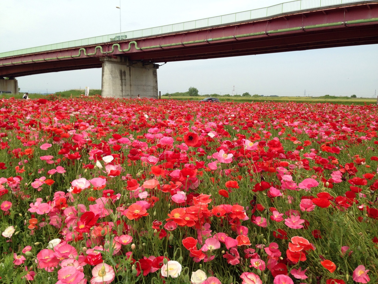 河川敷におりると一面のポピーの花で圧倒されます。