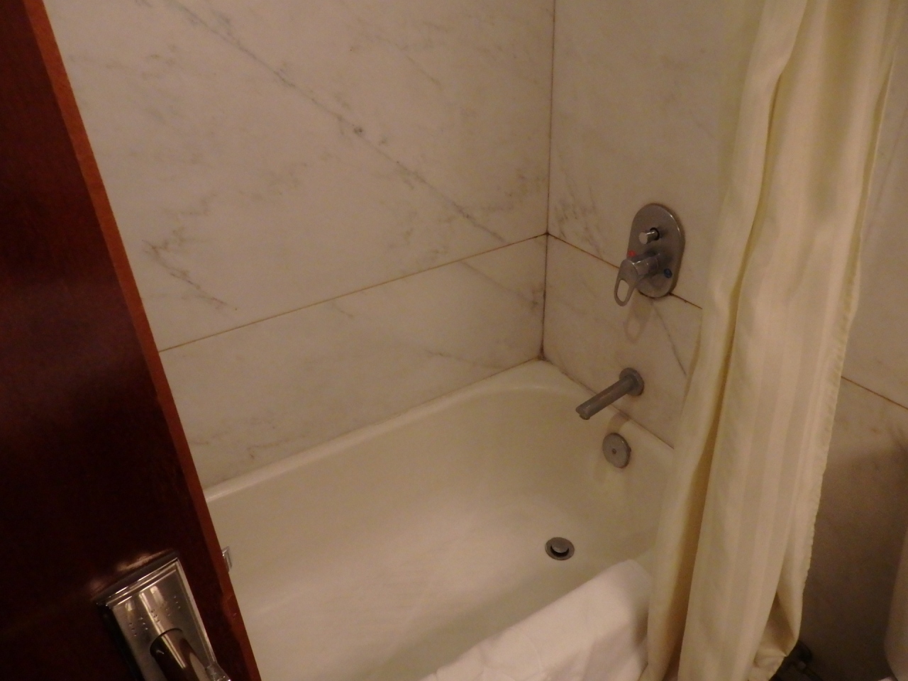 シャワーカーテンを開けたら、バスタブから出るのをためらうほどの水が