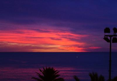 (写真 タオルミーナの夕焼け) どこの国でも夕焼けは美しいが、地中海...