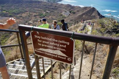 HISだったのでレアレアトロリーでダイヤモンドヘッドへ、入山料1ドルで...