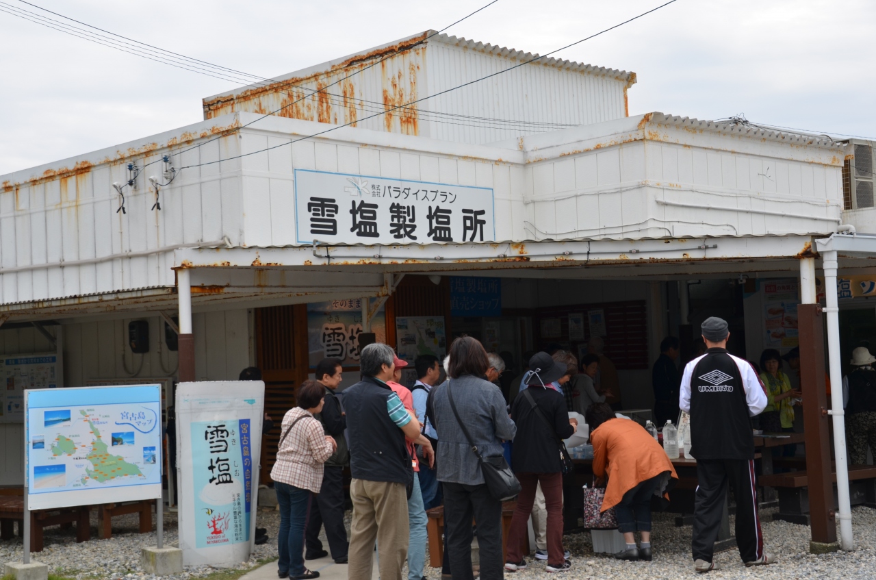 宮古島の北の池間大橋(宮古島側)の近くにお店(製塩場及び売店)が有り、ミネラル豊富という沖縄の塩の専門店で無料で塩の試食が出来、雪塩制作過程も見学出来ます。