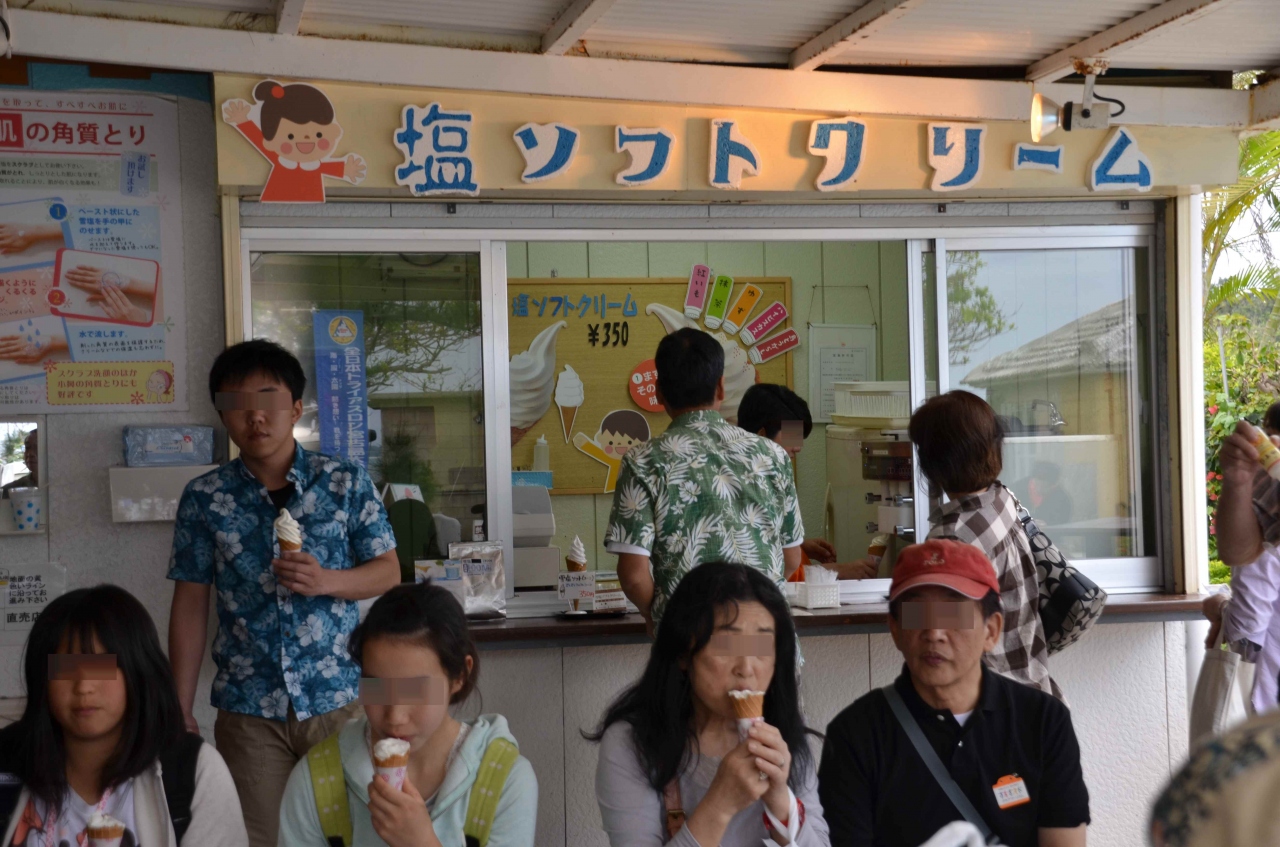 名物の観光客がほとんど頼む「雪塩ソフト」は結構いけてソフトに色々な塩をふりかけて食べてみました、塩とソフトクリームのマッチングが絶妙です。