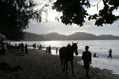 右側には静かで綺麗な小さな湾を時々観ながら、山道を歩きます、又此の時は殆ど人影が有りませんでした、静かな砂浜を降りたりしてモンキービーチに到着、途中スコールに遭いながらでもそれも良い経験でした。