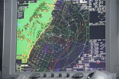 鯨、シャチのウォッチングへ。レーダーの右側はロシアの海域でしょう。