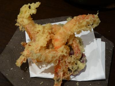 で、その中でもなんといっても一押しは、車海老の天ぷらです。頭からしっぽまで一匹丸々美味しく頂けます。