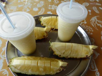 ジュースは冷凍したパイナップルをジューサーでジュースにしているようです。