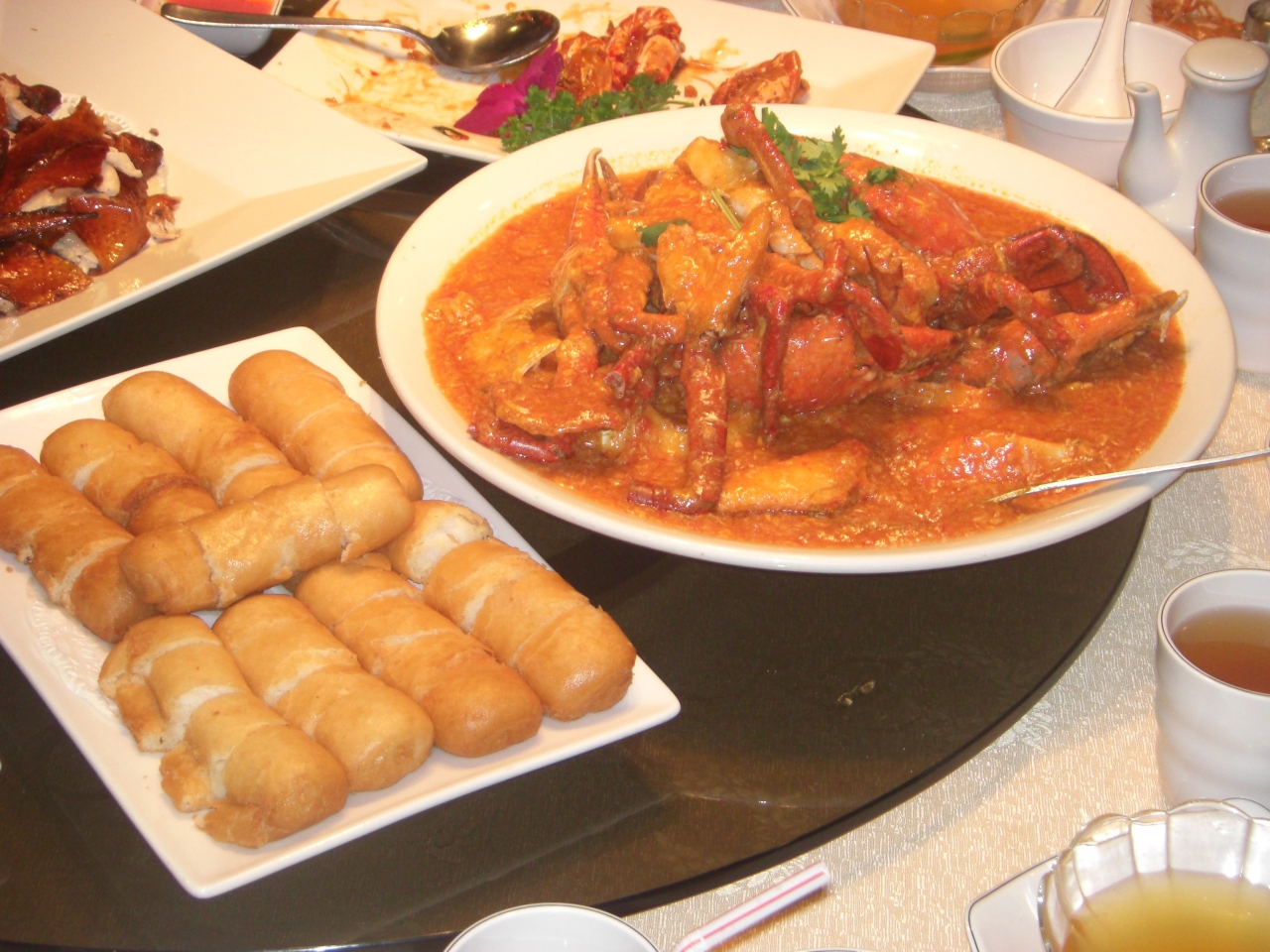 料理ですが、シーフードレストランですから、魚・カニ・海老・貝などがコースとして出てきます。その中でもやはり「チリクラブ」でしょうね。美味しかったですよ。大きなカニとチリソース。その残りのソースを揚げパンにつけて食べる。「おしいい!!」- 旅行時期