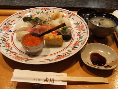 さて、お寿司ですが、私達は沼津港であがる地元の魚と定番のお寿司の入った「羽衣」を頂きました。これ以外に地元の魚だけのお寿司もあります。