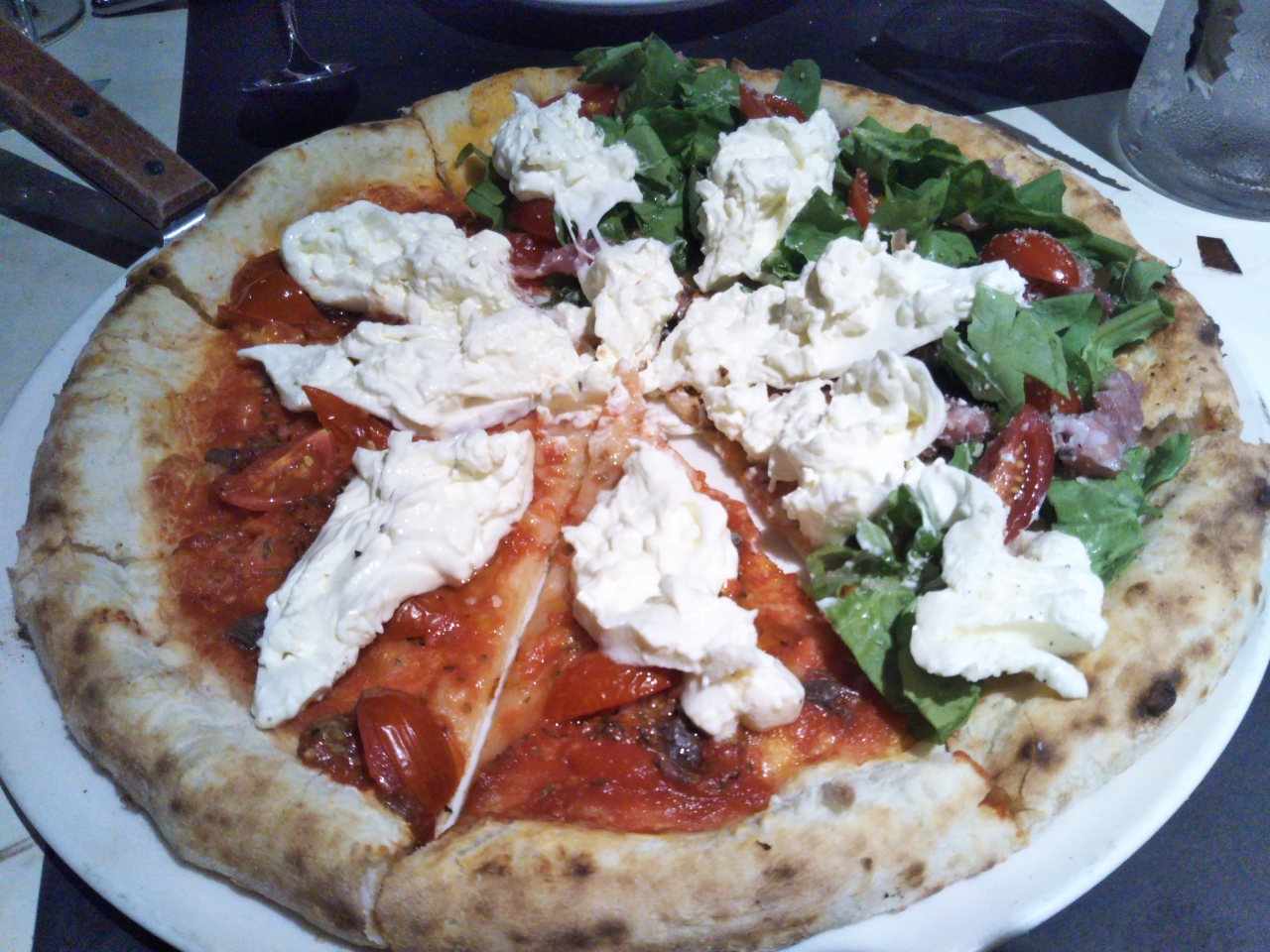 アンチョビとハムのハーフ&ハーフ ブラッターチーズ大(ハム→145000ドン アンチョビ→124000)を切ってそれぞれのピースに乗せてもらいました。