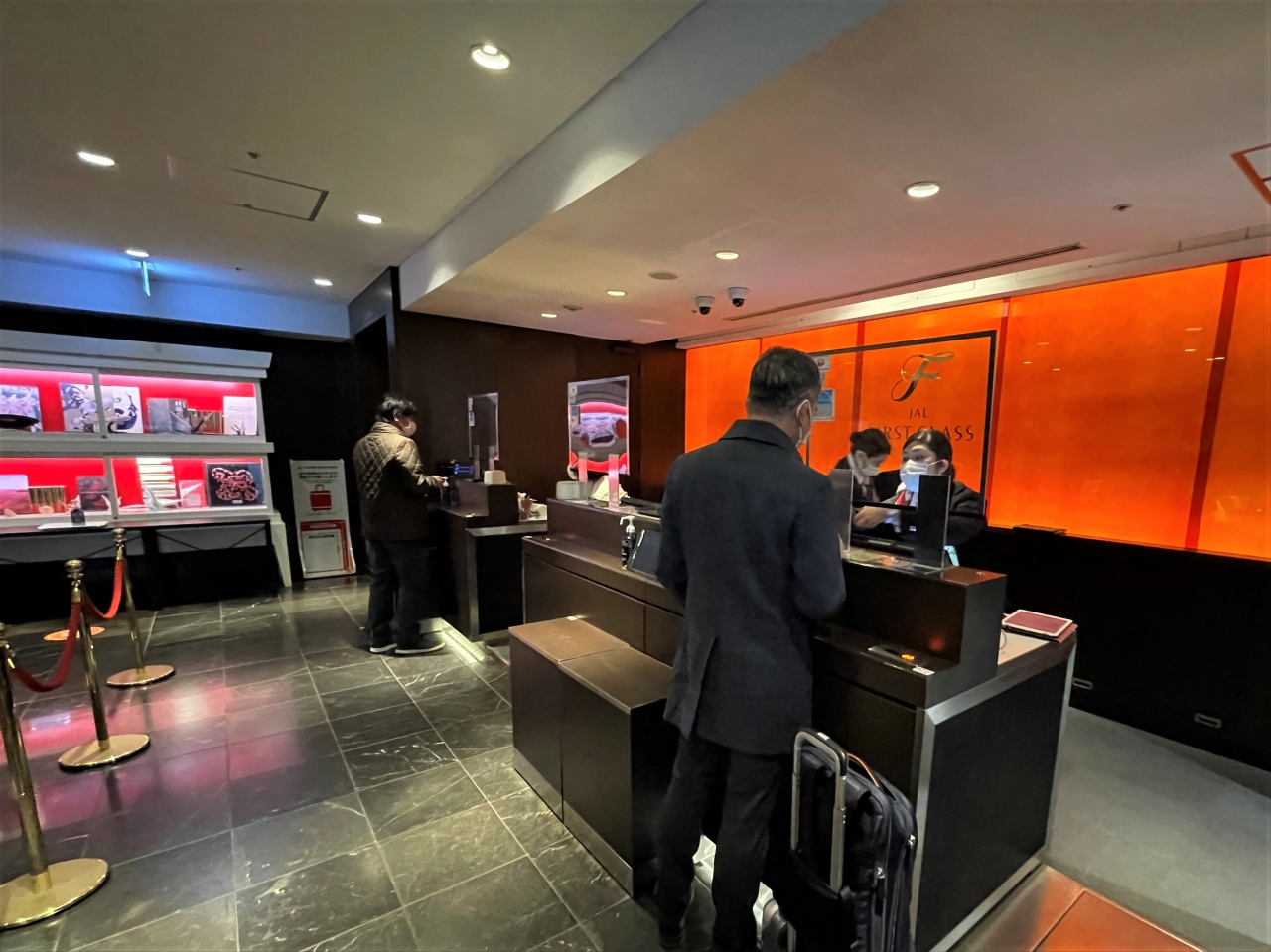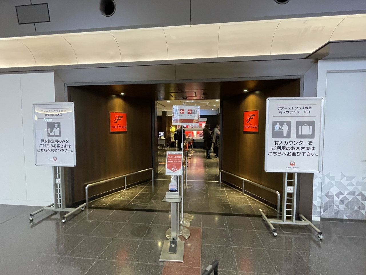 ダイアモンドステータスの場合、空港ではまずファーストクラスエントランスから入ってチェックインし、そのまま専用の保安検査場を抜けると目の前にあるエスカレーターを上がってカウンターで受付すればダイヤモンドプレミアラウンジです!