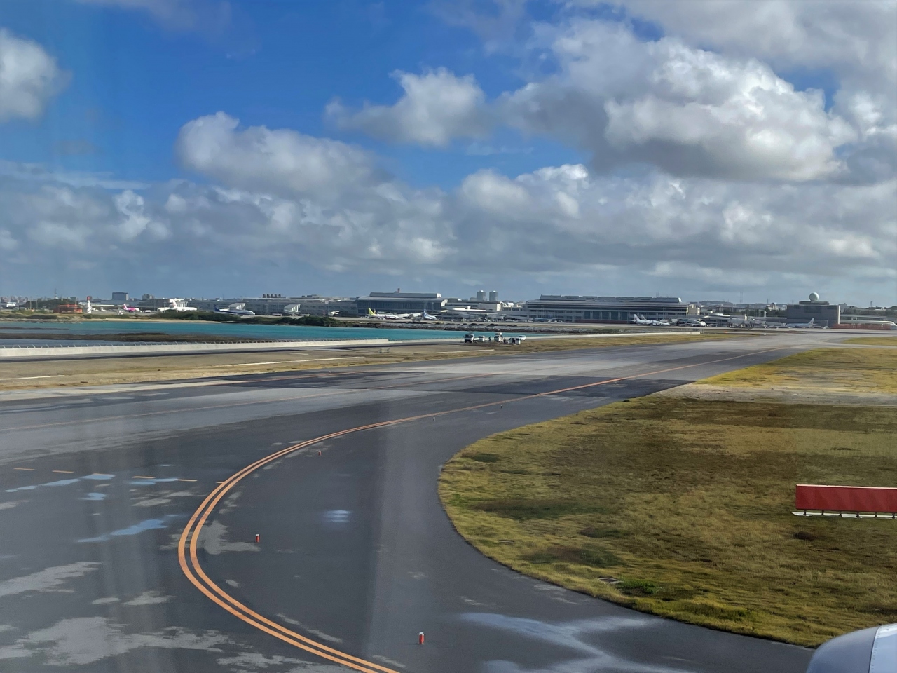 11月末日、早朝の羽田空港はとても寒くてダウンジャケットでしたが、那覇空港では長袖1枚でちょうどいいくらい。とても過ごしやすい気候だと思いました。