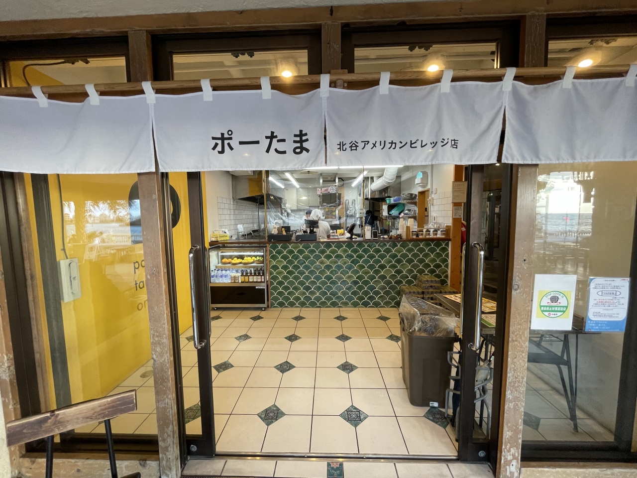 アメリカンビレッジの海沿いにある「ポーたま」で「ポーたま」を注文!待たずにすぐテイクアウト!
