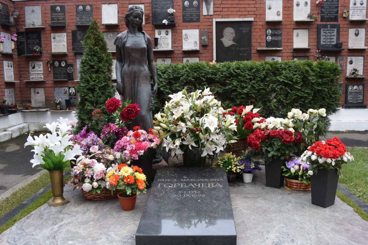 その近くで沢山の花に囲まれたお墓はソ連最後の最高指導者ミハイル・ゴルバチョフ氏(1931年3月2日 -)のご夫人ライサ・ゴルバチョフさん(1932年1月5日 - 1999年9月20日)のお墓でした。