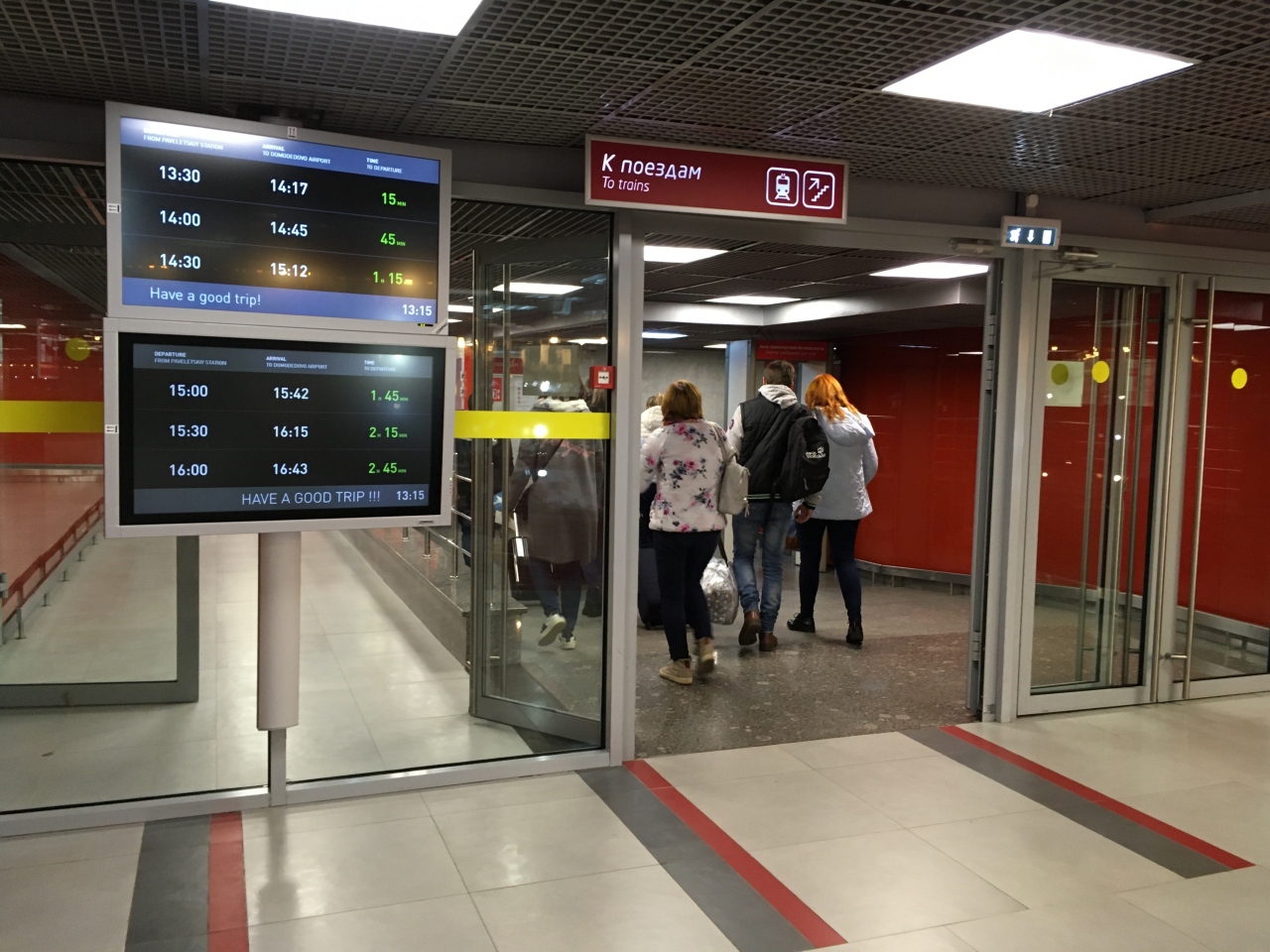 ドモジェドヴォ国際空港へのアエロエクスプレスの発着駅でもあり、料金は500ルーブル。