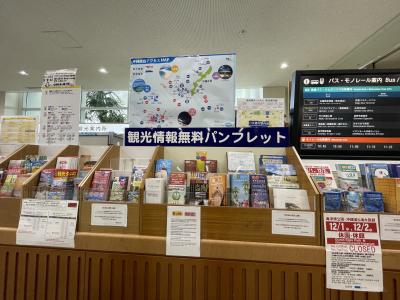 荷物を受け取って外へ出て左側へ進むと、観光情報無料パンフレットがたくさん置いてあり情報収集に役立ちました。