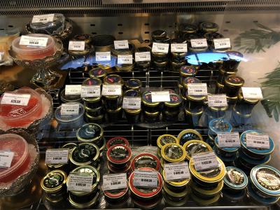 なお、店内には他にイクラの瓶詰、サーモン、そしてキャビアなど高級食材の数々♪