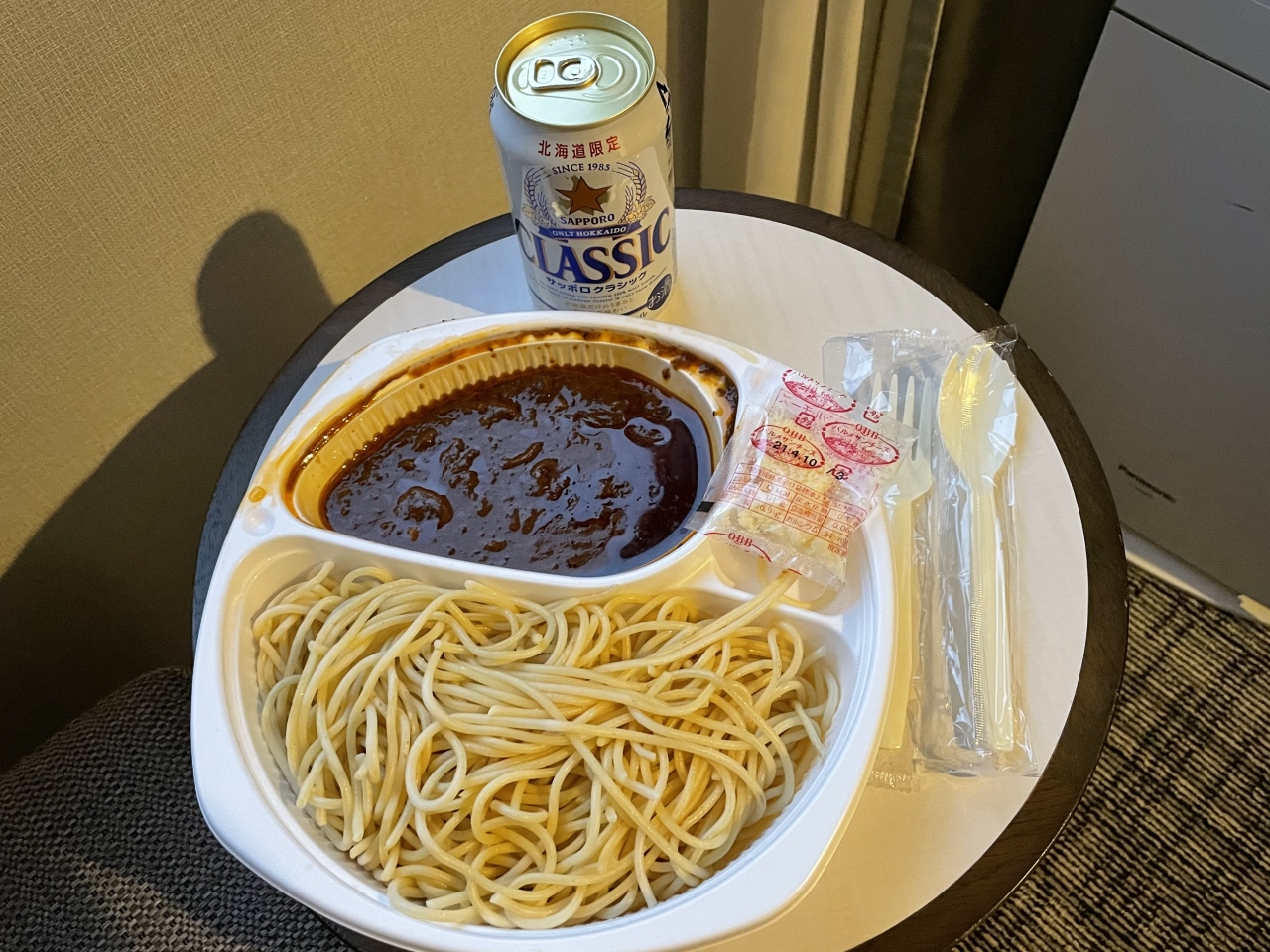 テイクアウトはしっかり蓋の閉まる容器に入るのでミートスパゲッティ708円(税込)にしてみました。