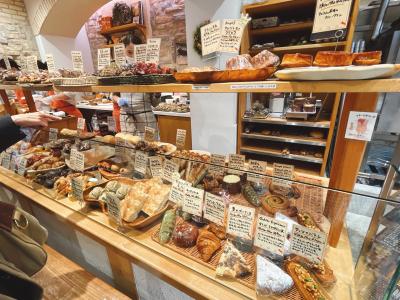 広々とした店内の真ん中や入口横に、どれも美味しそうなベーグル!