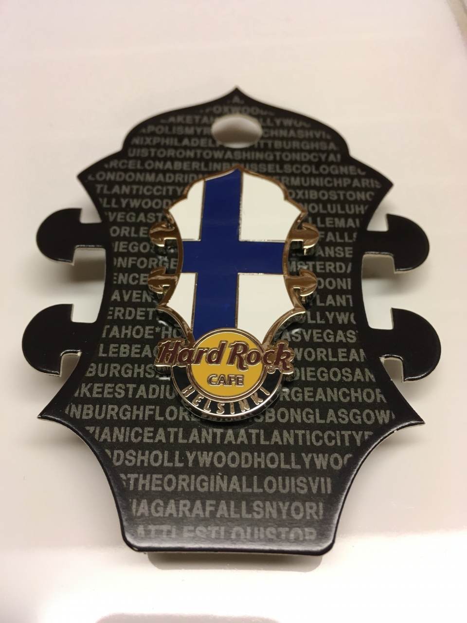 ピンバッチは、定番のギター型の他、観光地が書かれているものなど色々と種類はありましたが、今回はフィンランド国旗のデザインを購入しました♪
