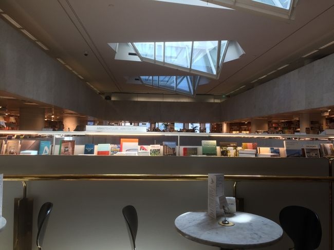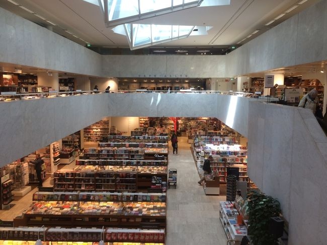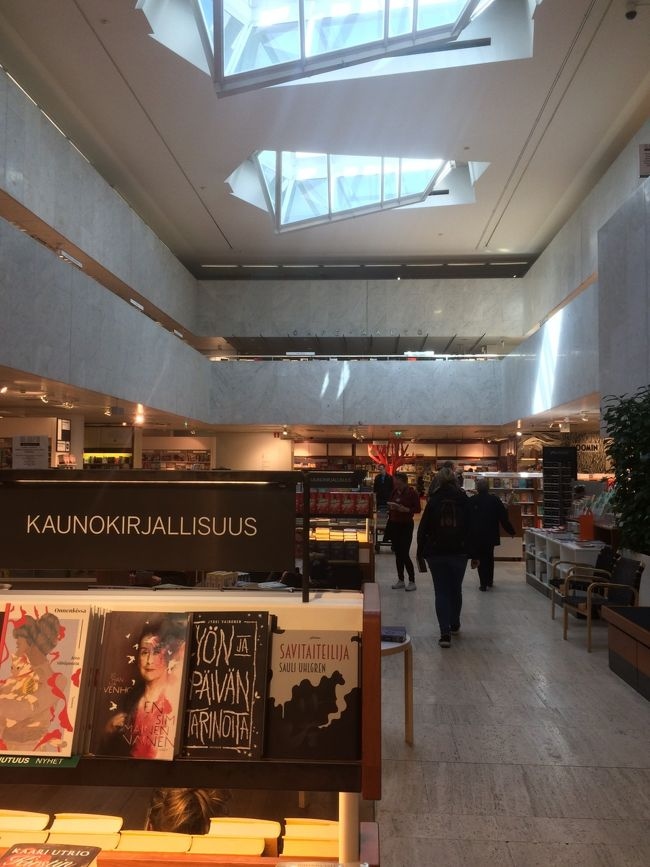 アルヴァ・アアルトが設計した建物で、中に入ると奥に広い店内には多数の本棚が並んでいます。