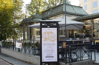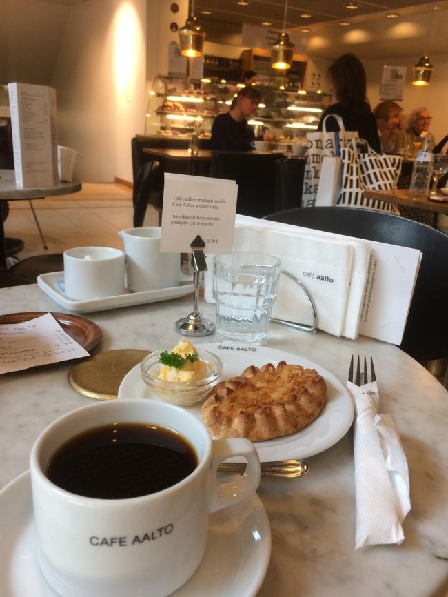 カレリアパイ3.9ユーロ、コーヒー3.8ユーロで合計7.7ユーロ(現金支払)- 旅行時期