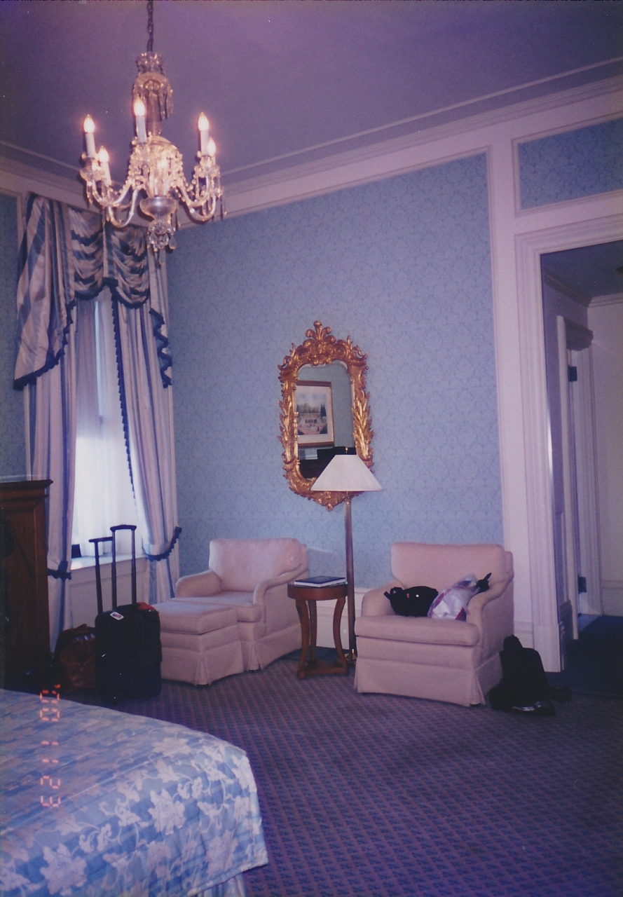 お部屋は天井が高くシャンデリアは素敵でしたが、バスルームは大理石ではなくタイル貼り(だからバスルームの写真を撮っていないようです)。