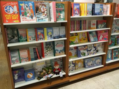 フィンランドのキャラクター「ムーミン」の絵本がたくさんありました。