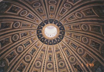 カトリック教会の総本山サンピエトロ大聖堂の巨大なクーポラの最上階からはバチカン市国とローマ市内が一望でき、真っ直ぐ続く道の先にはローマのサンタンジェロ城が見えました。