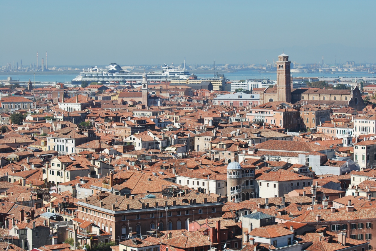 赤い屋根のベネチアの建物、周りの島々、そしてリベルタ橋を渡ったメストレ方面など・・・
