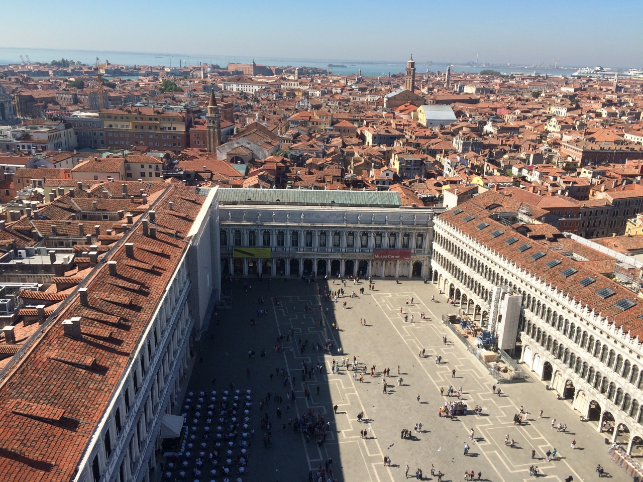 鐘楼の上から見下ろすサンマルコ広場は、地上の平坦な角度とは違って新鮮な眺めでした。