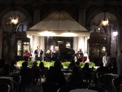 カフェフローリアンの前で生演奏をやっていて、夜はその軽快な楽曲に手拍子する大勢の観光客達と一緒になって盛り上がり楽しい時間を過ごせました。